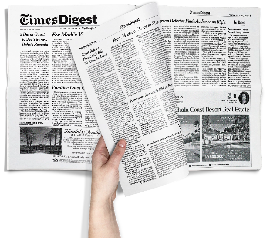 TimesDigest is a 10-page daily summary of The New York Times delivered 365 days per year.